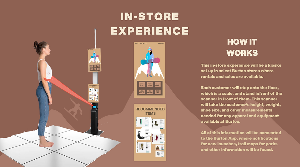 I decided to do an extended campaign for Burton as a final project for my Advertising and Social Strategy class, where I explored the possibilities of user experience in stores and how that could create a community within the sport of snowboarding.